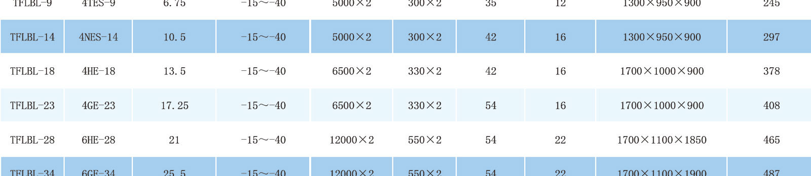 风冷低温冷凝机组参数表