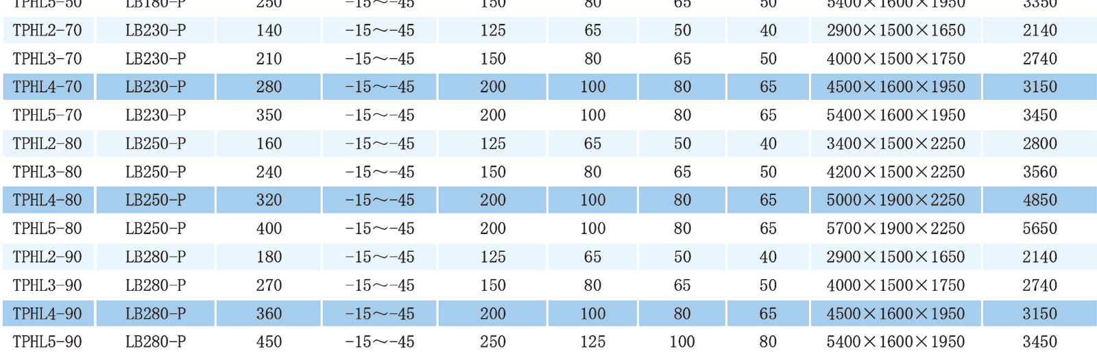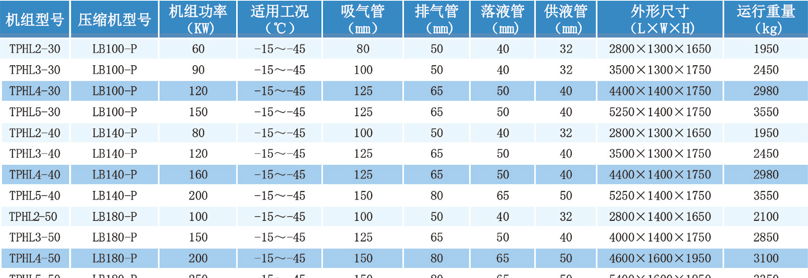 低温螺杆并联机组参数表