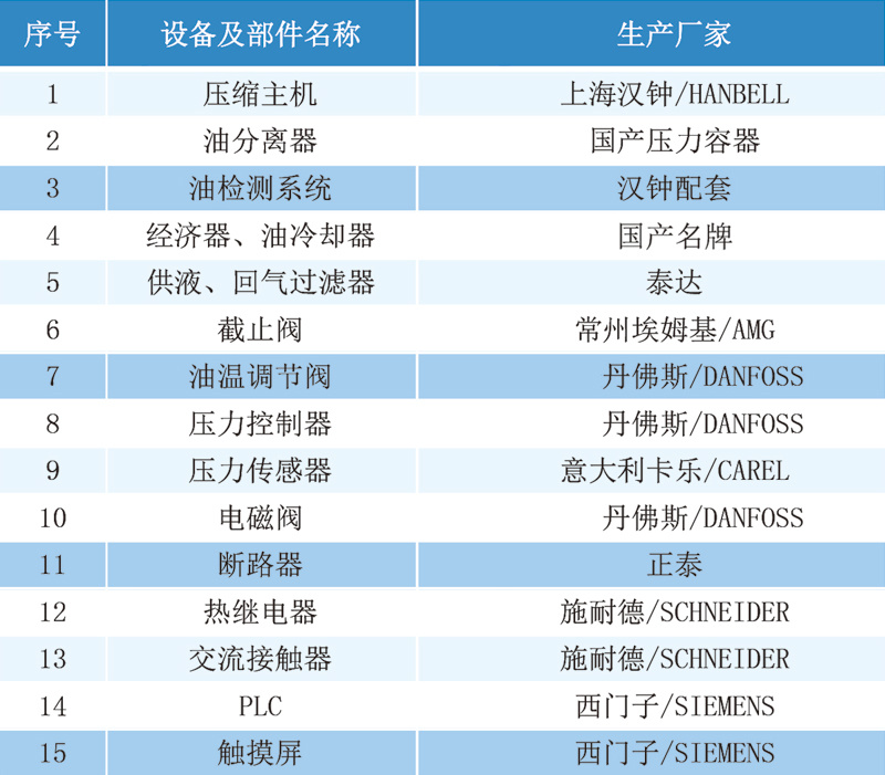 低温机型标准配置