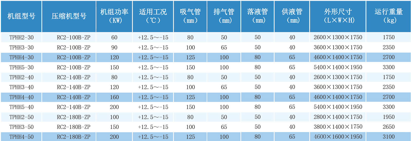 中高温螺杆并联机组参数表