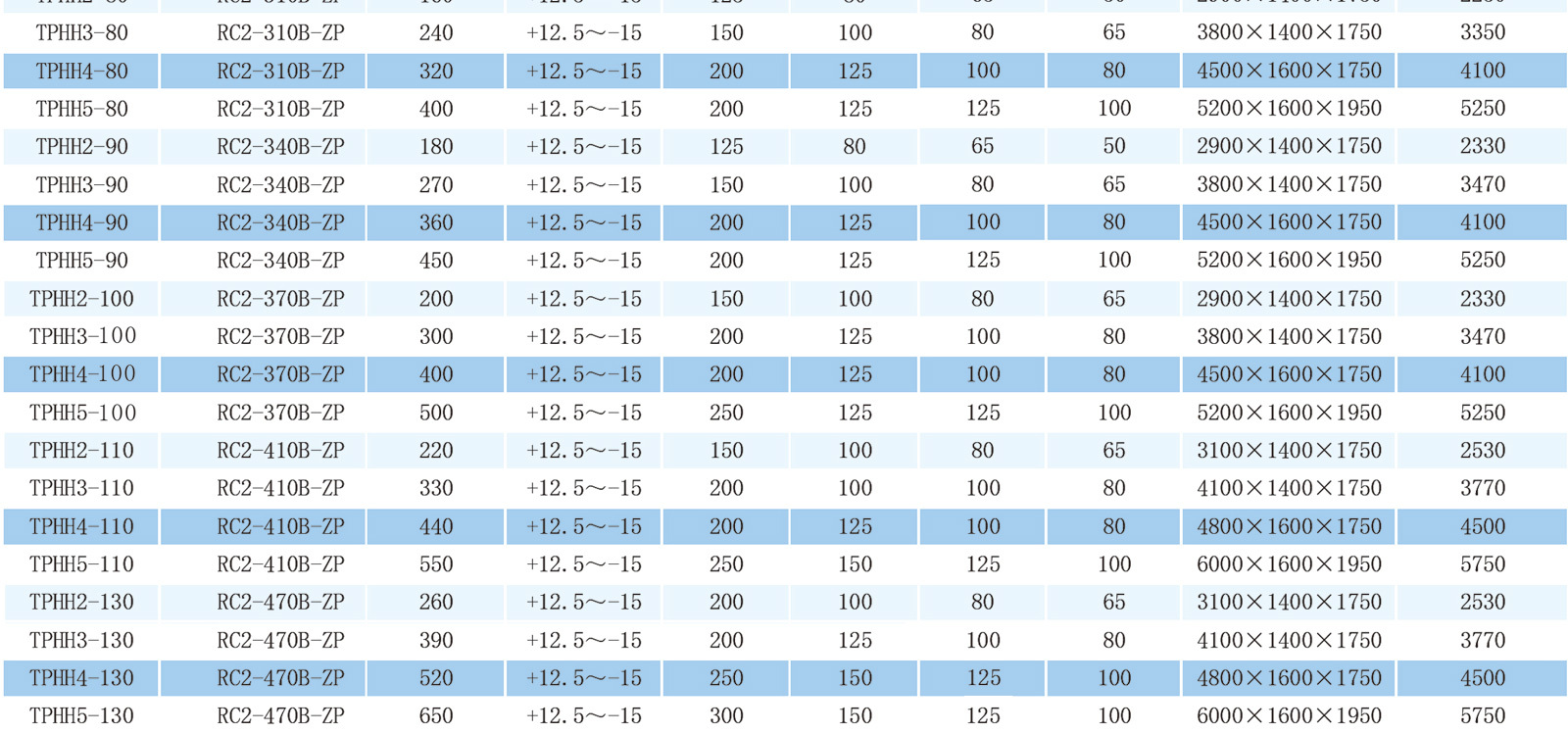 制冷能力容量表