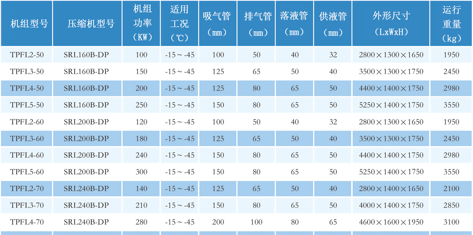 低温并联螺杆压缩机组参数表