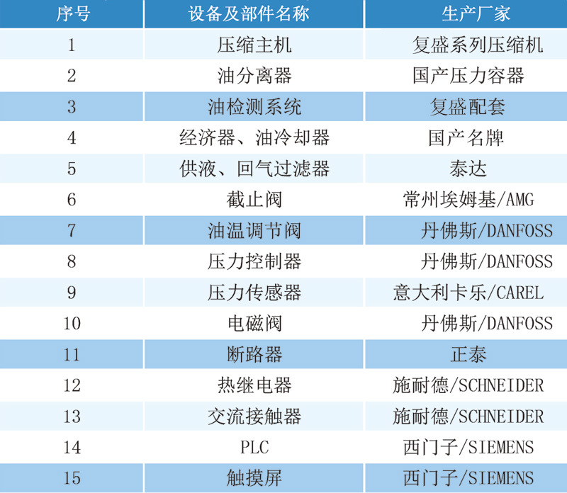 低温机型标准配置