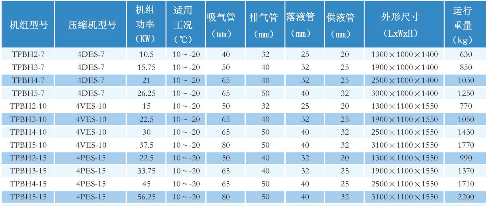 制冷能力容量表