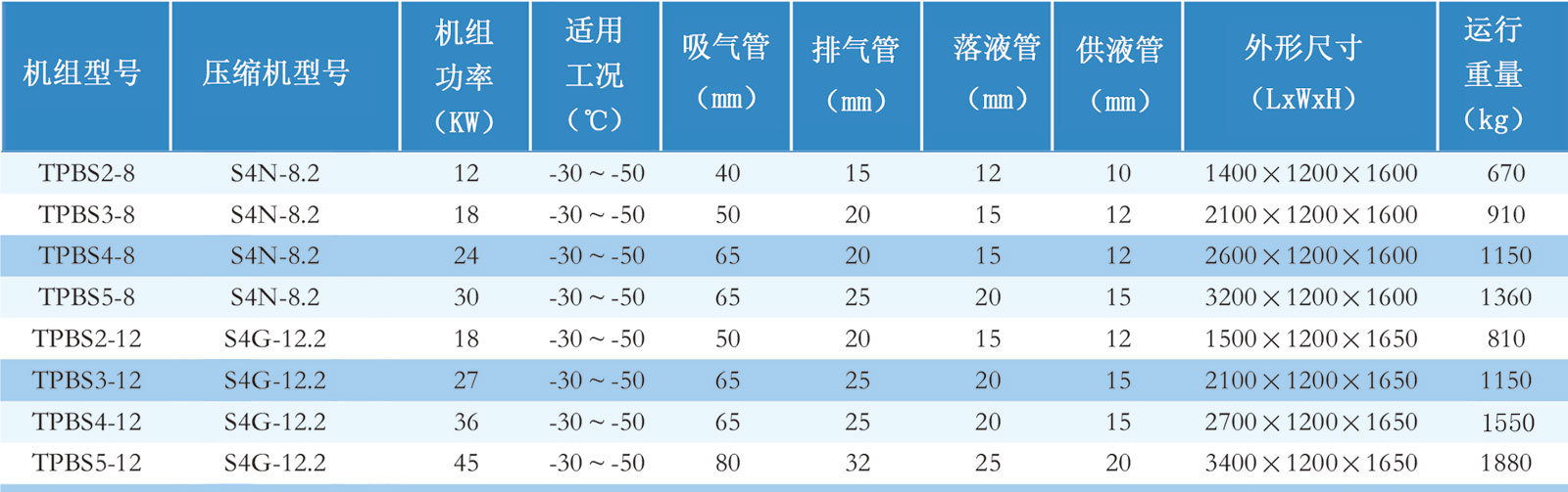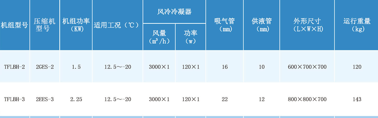 风冷中高温冷凝机组参数表