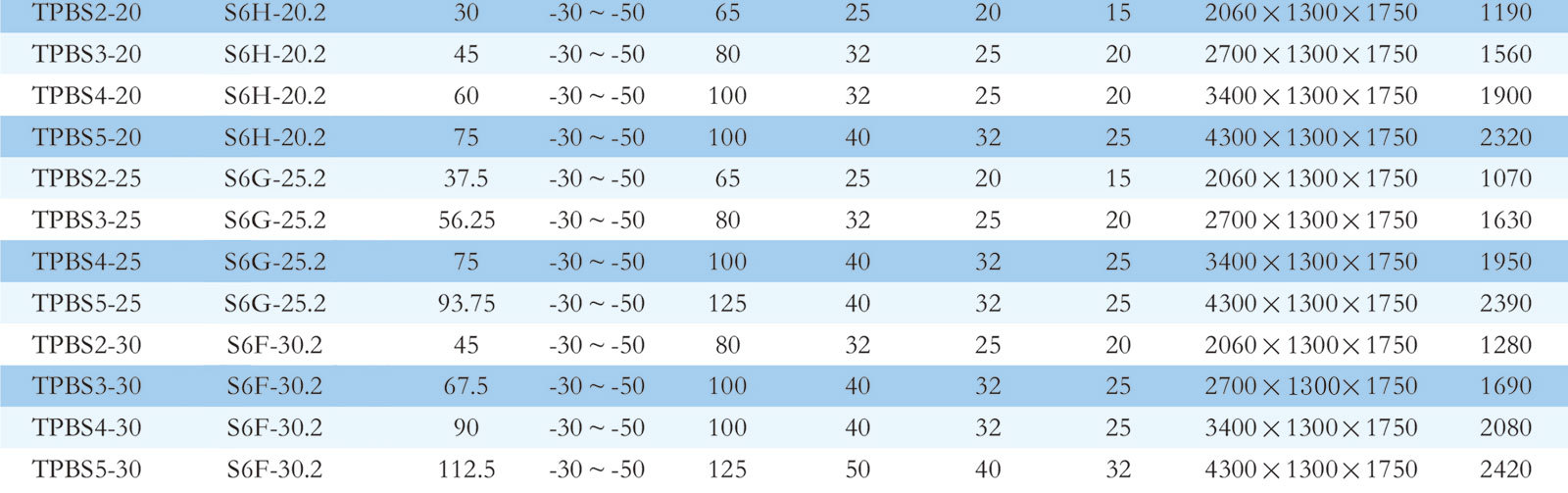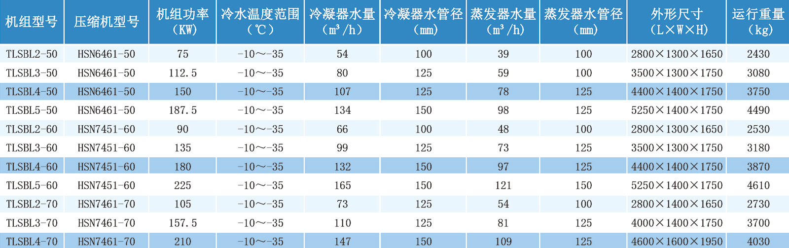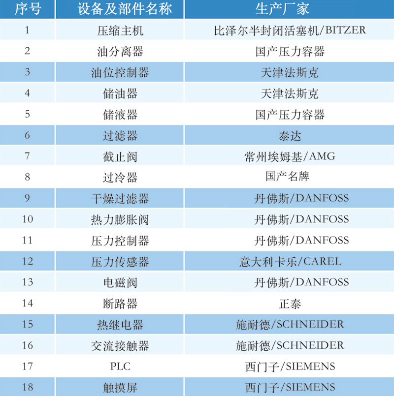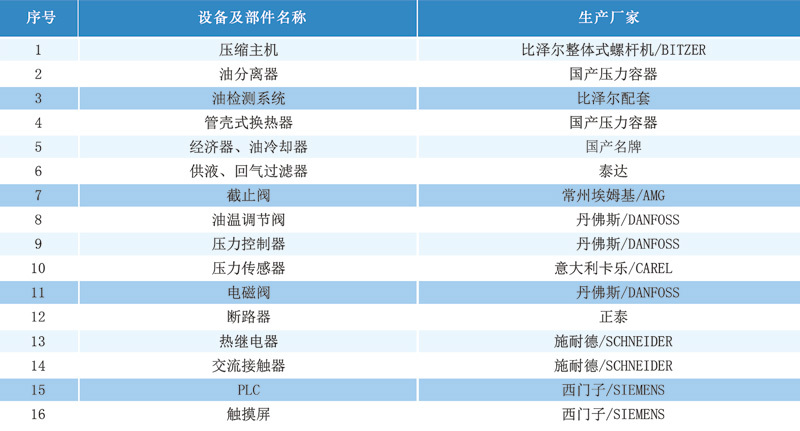 低温冷水机组参数表低温冷水机组标准配置